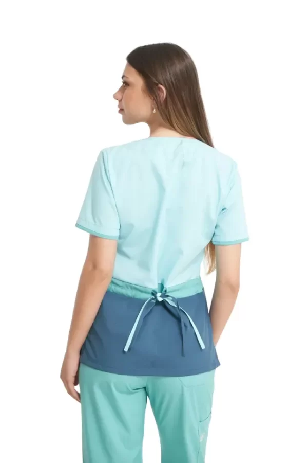 Chaqueta modelo ambo escote en V. Cuello de tela de combinación en 2 colores contrastantes para combinar con diferentes colores de pantalones.