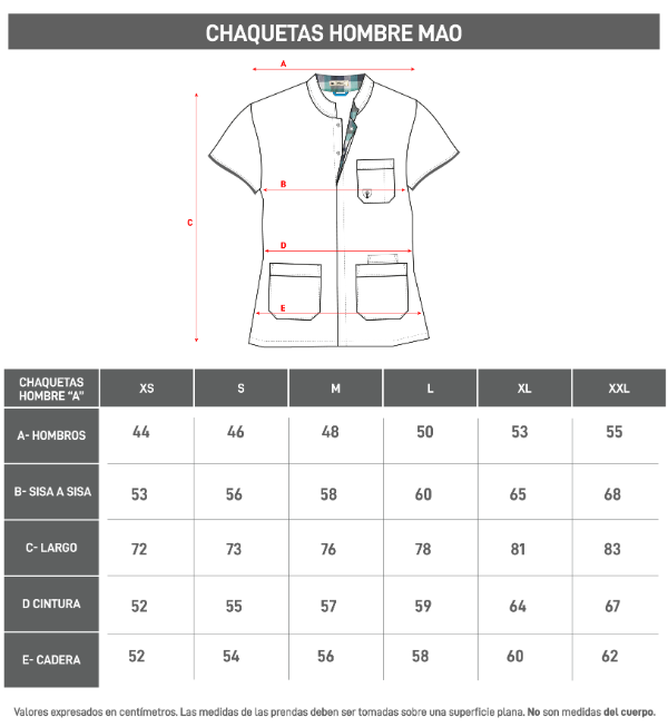 Abierta adelante con broches a presión escondidos. Doble tela de combinación en parte interna de los broches.